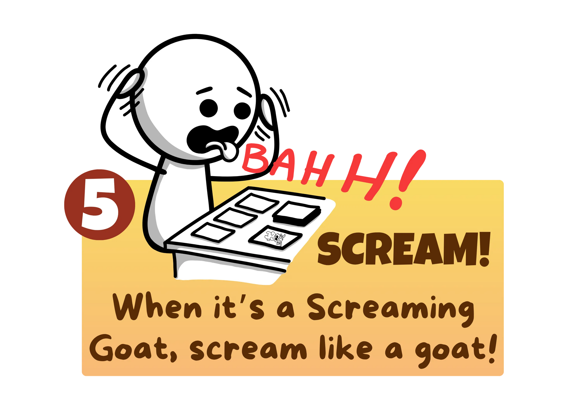 Enter the wild chaos of Screaming Goat, the hilariously loud card game where players race to harvest veggies while dodging unruly goats! But watch out—one wrong move and the screaming goat might steal your crops and your sanity!