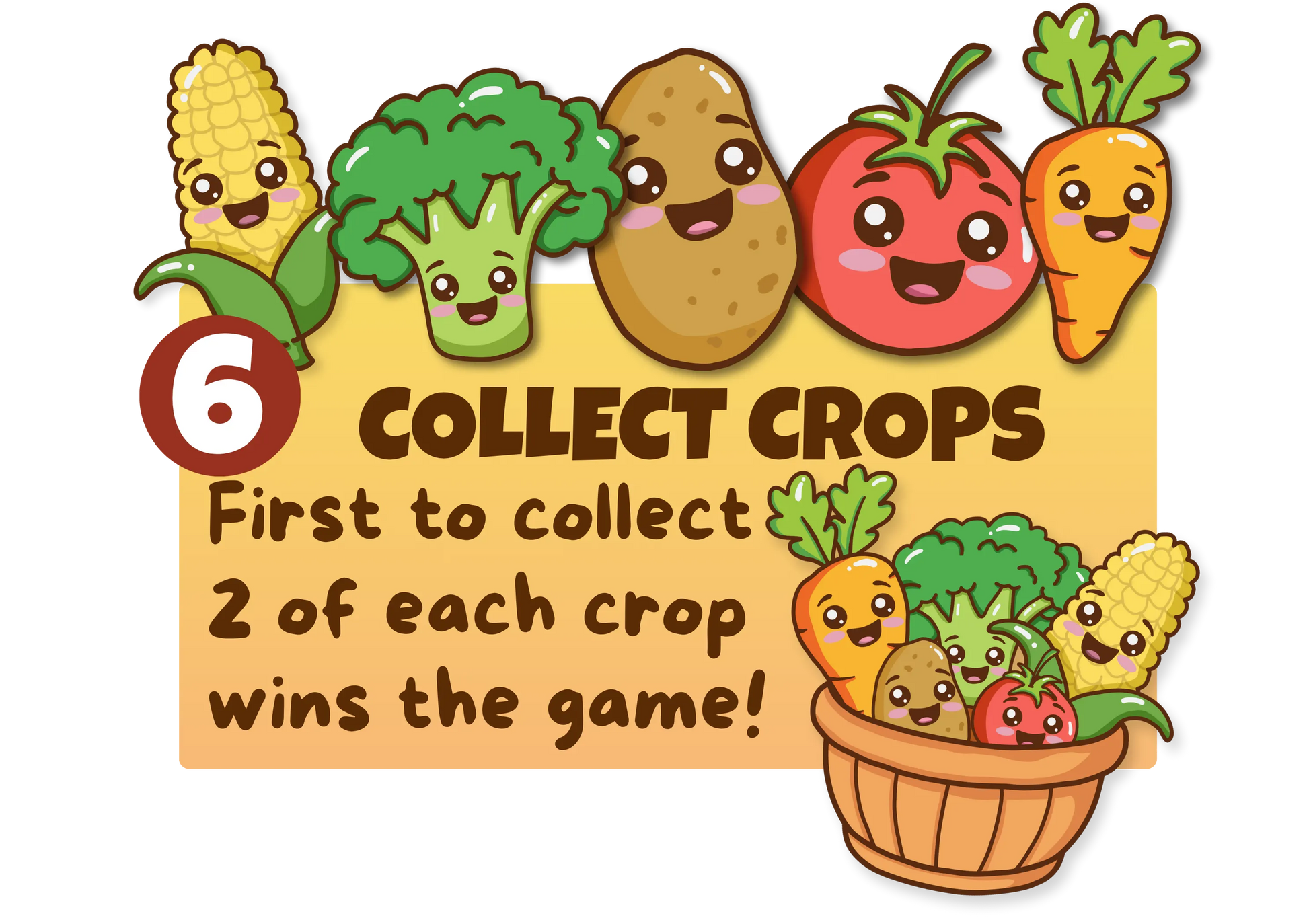 Collect 2 of each veggie! Sounds easy, right? Not so fast—each turn, you'll flip a card that might help your harvest or unleash a goat ready to steal, freeze your turn, or cause total chaos on the farm. And when the Screaming Goat appears, act fast—hands on ears, scream, and slap the pile—or lose precious veggies in the uproar!